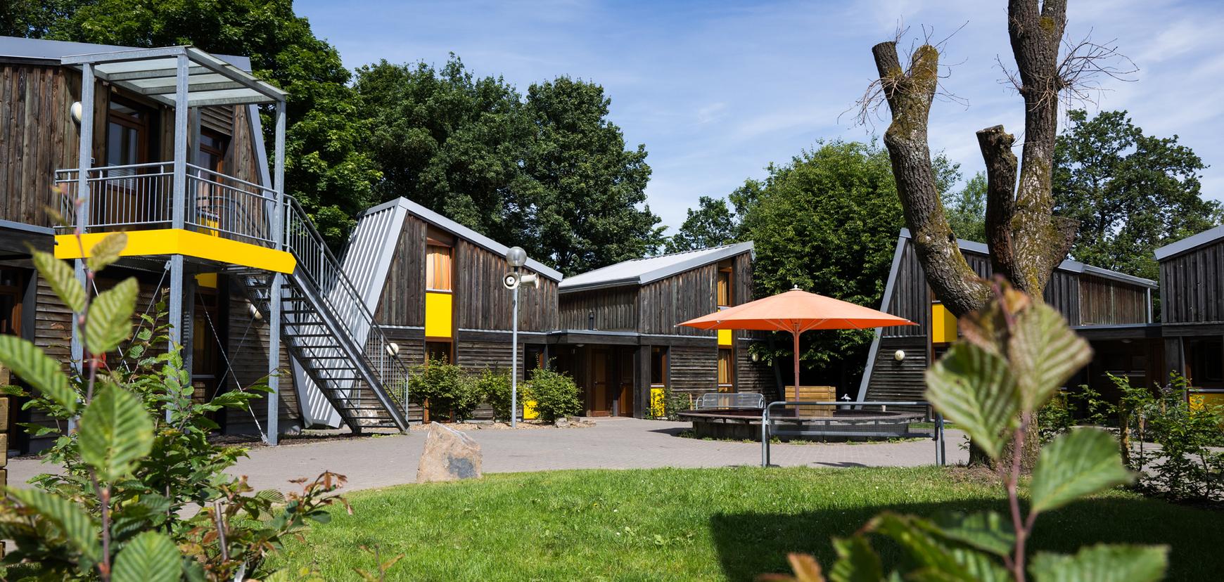 In einer landschaftlich angepassten Architektur bieten 25 Häuser jugendgerechten Wohnkomfort mit vielen Sport- und Freizeitmöglichkeiten.