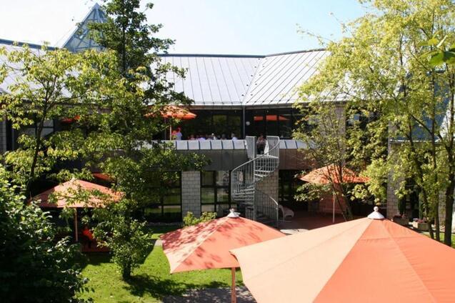 Innen laden gemütliche Ruhe- und Kommunikationsbereiche zum Verweilen ein, draußen sorgt eine gepflegte Gartenanlage für entspannte Momente im Grünen.